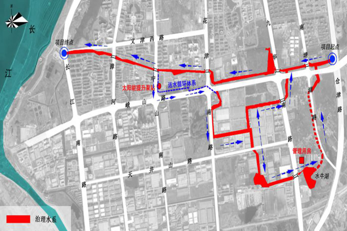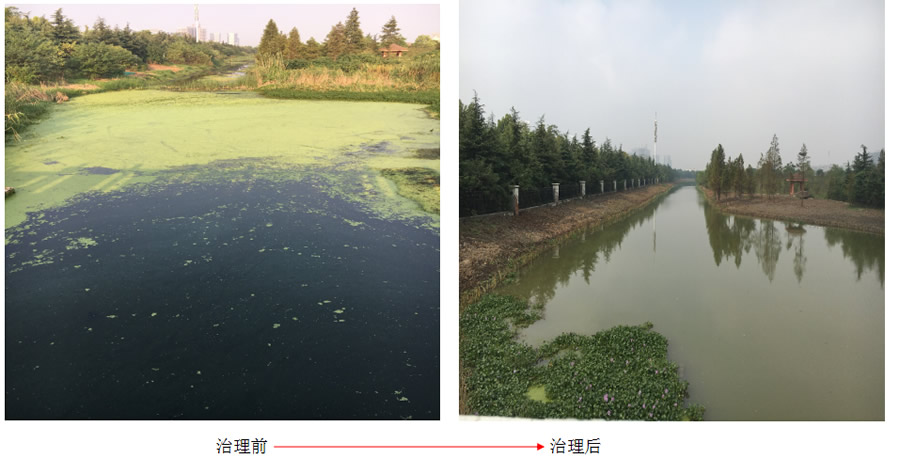 弋江區(qū)黑臭水體治理澛港水系示范項(xiàng)目的主水系明渠長(zhǎng)約4.86km,匯水區(qū)面積約3.6km2,平均寬度約29.46m,治理水面積約0.15km2。該項(xiàng)目為住建部掛牌的黑臭水體治理項(xiàng)目,水體黑臭現(xiàn)象嚴(yán)重,生活污水、工業(yè)廢水直排河道,水體富營(yíng)養(yǎng)化嚴(yán)重。我公司采用“三鏈”網(wǎng)式生態(tài)修復(fù)技術(shù),再結(jié)合淤泥疏浚、控源截污、雨污混流預(yù)處理、曝氣復(fù)氧、生態(tài)浮島、生物強(qiáng)化等環(huán)境工程工藝措施,運(yùn)營(yíng)6個(gè)月后整個(gè)水體完全消除黑臭,部分水質(zhì)指標(biāo)達(dá)到地表水Ⅳ類水標(biāo)準(zhǔn)。